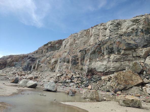 因G526(江南至北部)快速通道建設(shè)需回填方量約1000萬立方米(折約2500萬噸),為此設(shè)立岱山縣岱西鎮(zhèn)雙合社區(qū)牛山建筑用石料(凝灰?guī)r)礦采礦權(quán)。岱山縣筑地土地開發(fā)有限公司取得采礦權(quán),于2018年3月30日取得了浙江省自然資源廳頒發(fā)的采礦許可證(證號:C3309212018037120146019),開采礦種:建筑用石料(凝灰?guī)r),有效期至2023年9月30日,開采規(guī)模:260萬立方米/年,為工程礦山。礦山于2019年6月通過安全設(shè)施竣工驗收,投入正式開采。目前因G526(江南至北部)快速通道已無石料需求,剩余石料運往青黑臨時堆場堆置。