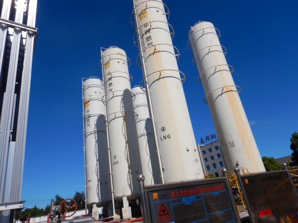 臺(tái)州華潤(rùn)燃?xì)庥邢薰舅鶎倥_(tái)州濱海LNG儲(chǔ)配站位于臺(tái)州市路橋區(qū)金清鎮(zhèn)濱海工業(yè)區(qū)十條河以西,由公司運(yùn)行管理部進(jìn)行管理。該儲(chǔ)配站現(xiàn)有6個(gè)150m³LNG立式低溫儲(chǔ)罐,總存儲(chǔ)量為340.2t,8臺(tái)氣化量3000 m³/h的空溫式氣化器,6臺(tái)氣化量4000N m³/h的空溫式氣化器,設(shè)計(jì)小時(shí)最大供氣量為24000 m³/h,員工8人。