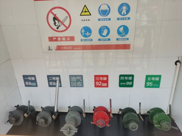 加油區(qū)設(shè)置加油罩棚,罩棚下設(shè)置4臺(tái)三油品六槍潛油式加油機(jī)(汽油)和2臺(tái)雙油品雙槍加油機(jī)(柴油);埋地罐區(qū)設(shè)有5只FF雙層承重油罐,其中30m3汽油罐3只、30m3柴油罐2只,折算后油罐總?cè)莘e120m3(柴油罐折半計(jì)入),根據(jù)《汽車加油加氣加氫站技術(shù)標(biāo)準(zhǔn)》GB50156-2021的相關(guān)規(guī)定,該站屬于二級(jí)加油站。加油站已安裝汽油卸油和加油油氣回收系統(tǒng)。