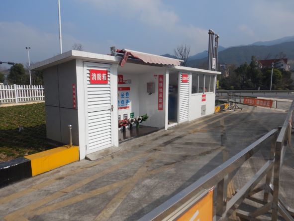 站區(qū)加油罩棚下設(shè)7座加油島(加油島上設(shè)置4臺三油品六槍潛油泵式稅控加油機(jī)和2臺三槍柴液一體機(jī)(兩槍加注柴油,一槍加注尿素液)以及1臺尿素溶液儲液箱)。埋地油罐區(qū)設(shè)5只埋地SF內(nèi)鋼外玻璃纖維增強(qiáng)塑料雙層油罐(非車道罐),其中4只30m³的SF雙層復(fù)合汽油罐(分別為2只92#汽油罐,1只95#汽油罐和1只98#汽油罐),1只50m³的SF雙層復(fù)合柴油罐1只(儲存0#柴油),折算后油罐總?cè)莘e145m³(柴油罐容積折半計(jì)入),根據(jù)《汽車加油加氣加氫站技術(shù)標(biāo)準(zhǔn)》GB50156-2021規(guī)定的等級劃分,該加油站為二級加油站。