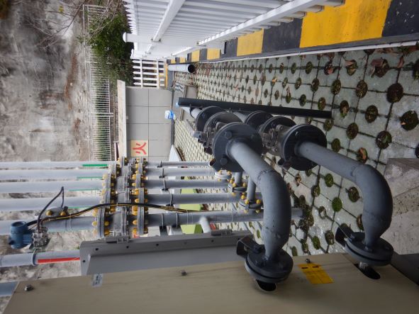 加油站安裝有汽油卸油和加油油氣回收系統(tǒng)以及三次油氣回收系統(tǒng)。加油區(qū)設置加油罩棚,罩棚頂部為輕鋼結(jié)構(gòu)。罩棚下設置4臺雙油品四槍潛油泵式加油機(汽油加油槍帶油氣回收)和1臺尿素液加注機;埋地油罐區(qū)設有5只30 m³埋地臥式SF雙層油罐(非車道罐),其中30 m³埋地臥式汽油罐4只(92#汽油罐2只、95#汽油罐1只、98#汽油罐1只),30m³埋地臥式柴油罐1只,油罐總?cè)莘e折算為135m³(柴油罐折半計入),根據(jù)《汽車加油加氣加氫站技術標準》GB50156-2021的相關規(guī)定,該加油站為二級加油站。
