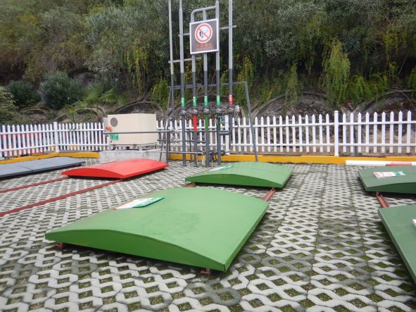 加油站設(shè)置汽油卸油和加油油氣回收系統(tǒng)以及三次油氣回收系統(tǒng)。加油區(qū)設(shè)置加油罩棚,罩棚頂部為輕鋼結(jié)構(gòu)。罩棚下設(shè)置2臺雙油品四槍和2臺三油品六槍潛油泵式加油機(汽油加油槍帶油氣回收)和1臺尿素液加注機;埋地油罐區(qū)設(shè)有4只埋地臥式SF雙層油罐(非車道罐),其中40 m³埋地臥式汽油罐1只(存放92#汽油),30 m³埋地臥式汽油罐2只(分別存放95#汽油和98#汽油),20m³埋地臥式柴油罐1只,油罐總?cè)莘e折算為110m³(柴油罐折半計入),根據(jù)《汽車加油加氣加氫站技術(shù)標準》GB50156-2021的相關(guān)規(guī)定,該加油站為二級加油站。